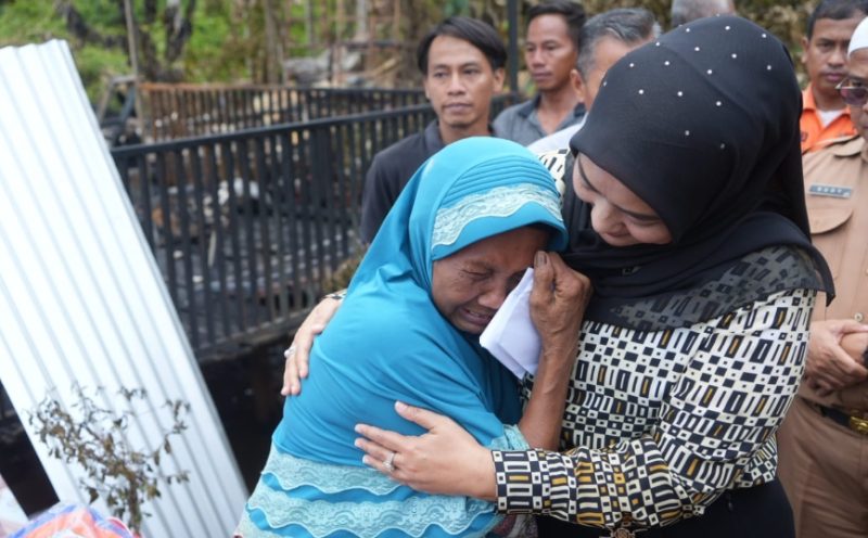SANKSI.ID, MUARO JAMBI- Ketua TP PKK Muaro Jambi Ririn Noviyanti BBS langsung menyambangi Jamilah yang rumahnya hangus terbakar pada Minggu 27 April 2025.